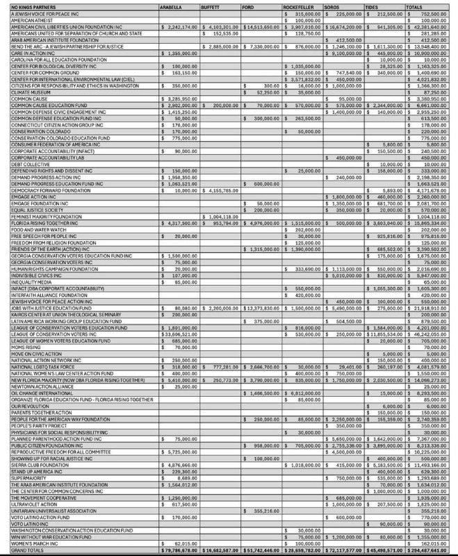 A planilha abaixo agrega dados de financiamento público de fundações como Arabella, George Soros, Tides e outras para ONGs da esquerda, com base em fontes como declarações de impostos do IRS, OpenSecrets e relatórios do Government Accountability Institute. A planilha demonstra que não existem movimentos populares espontâneos. O que se vê é uma revolta financiada por doações… planejada, orquestrada e financiada de cima para baixo pelas mesmas elites que estão relacionadas ao criminoso Jeffrey Epestein.