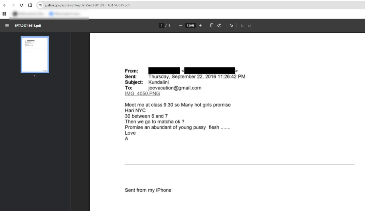 Este foi um e-mail que algum pedófilo enviou para Jeffrey Epstein com fotos anexadas: “Chegou o novo brasileiro, sexy e fofo = 9 anos”. Ele era um louco doente que abusava de crianças e era protegido pelos sionistas de Israel, a pátria dos judeus pedófilos.