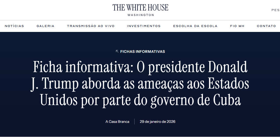 Os Estados Unidos intensificaram drasticamente sua campanha contra Cuba depois de cortar seu fornecimento de petróleo após uma operação militar dos EUA na Venezuela. O presidente Donald Trump assinou uma ordem executiva declarando emergência nacional em Cuba, autorizando tarifas elevadas sobre qualquer país que forneça petróleo a Havana, formalizando um bloqueio energético em expansão.