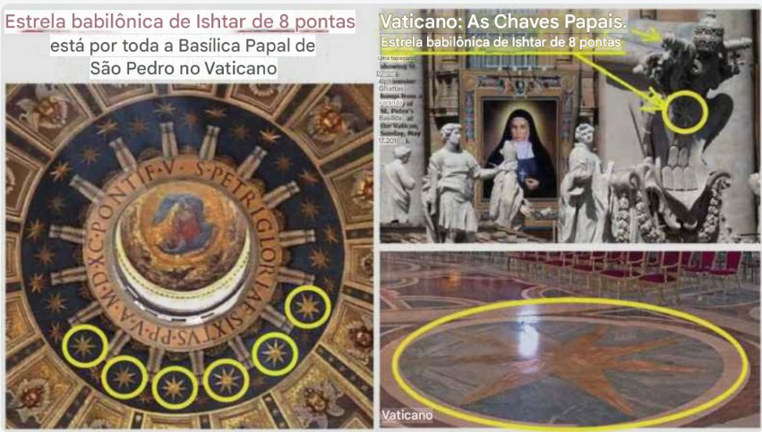 A estrela de oito pontas (ou octagrama) é um símbolo antigo associado à deusa Ísis e outras divindades do antigo Oriente Próximo e Egito, representando o poder celestial, a fertilidade e a proteção. Embora frequentemente ligada à deusa mesopotâmica Ishtar/Inanna, essa estrela também é reconhecida na iconografia de Ísis como um símbolo de sua natureza divina, poder sobre os céus e sua conexão com Vênus. Adivinha quem mais recebeu o título de “Rainha dos Céus” e era representada com uma estrela de oito pontas? Maria, a mãe de Jesus.