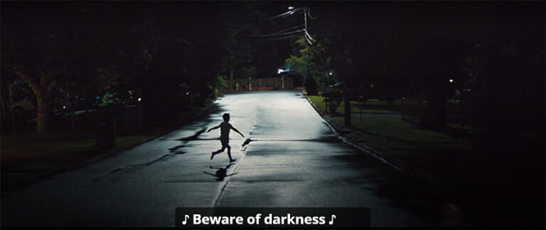 Por meio dessa escolha musical muito intencional, a cena deixa de ser sobre uma senhora idosa e passa a ser sobre uma força sombria que se alimenta de crianças.