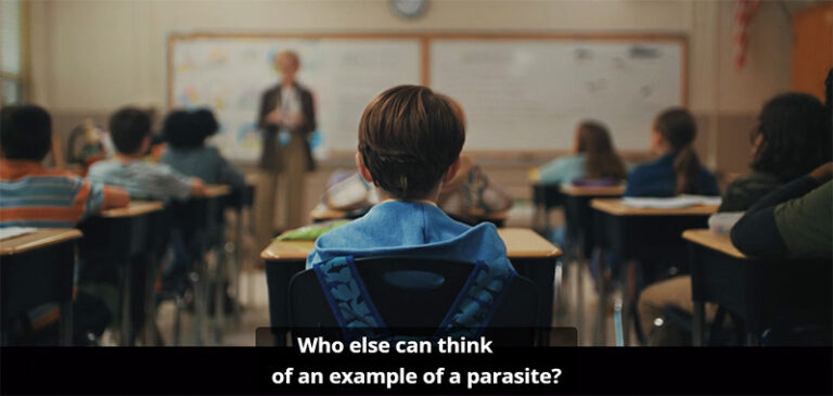Em outra cena aparentemente aleatória, o diretor da escola e seu namorado assistem a um documentário sobre um parasita que toma conta do cérebro e do corpo de uma formiga.
