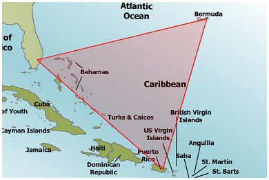 O Triângulo das Bermudas, também conhecido como Triângulo do Diabo, é um dos lugares mais estranhos do nosso planeta, pois lá a bússola não aponta para o norte magnético, mas sim para o norte verdadeiro. Esse estranho fenômeno causa confusão na navegação, sendo mais um motivo para que navios e aviões se desviem de suas rotas e se percam e até desapareçam.