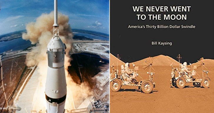 Um pioneiro foi Bill Kaysing, que quebrou o assunto em 1976 com seu livro autopublicado Nunca fomos à Lua: a fraude de trinta bilhões de dólares da América. Ele pode ser chamado de denunciante, já que foi chefe da unidade de apresentações técnicas do Laboratório de Campo de Propulsão da Rocket Dyne de 1956 a 1963, empresa que projetou e construiu o motor e os componentes do projeto Apollo. Durante esse período, Kaysing manteve autorizações de segurança junto aos EUA. Força Aérea e Comissão de Energia Atômica.