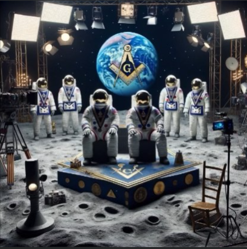 O suposto astronauta Buzz Aldrin é um maçom do Rito Escocês de 33° grau e um Shriner. Ele carregou uma bandeira maçônica para a Lua, e A Grande Loja do Texas deu-lhe um diploma oficial declarando-o “o primeiro Maçom na Lua” e reivindicou a jurisdição territorial maçônica da Lua.