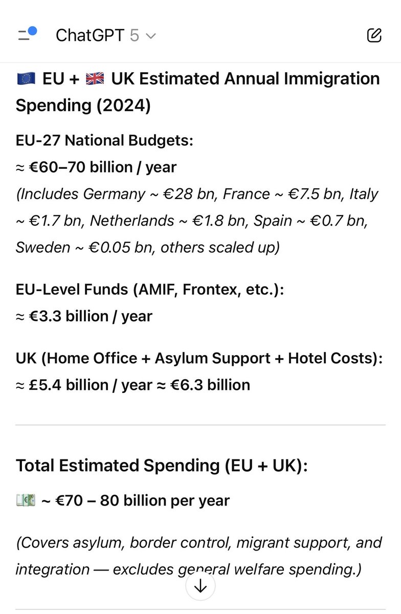 A UE e o governo do Reino Unido gastam mais de €60 bilhões TODOS OS ANOS em programas de imigração. No entanto, por um CUSTO ÚNICO de €34 bilhões é possível remigrar com segurança cada imigrante ilegal da UE e do Reino Unido a €10 mil por pessoa. Porque ninguém nos governos da UE e do Reino Unido está estudando isso? Por que eles recebem ordens da Sociedade Fabiana de Londres.