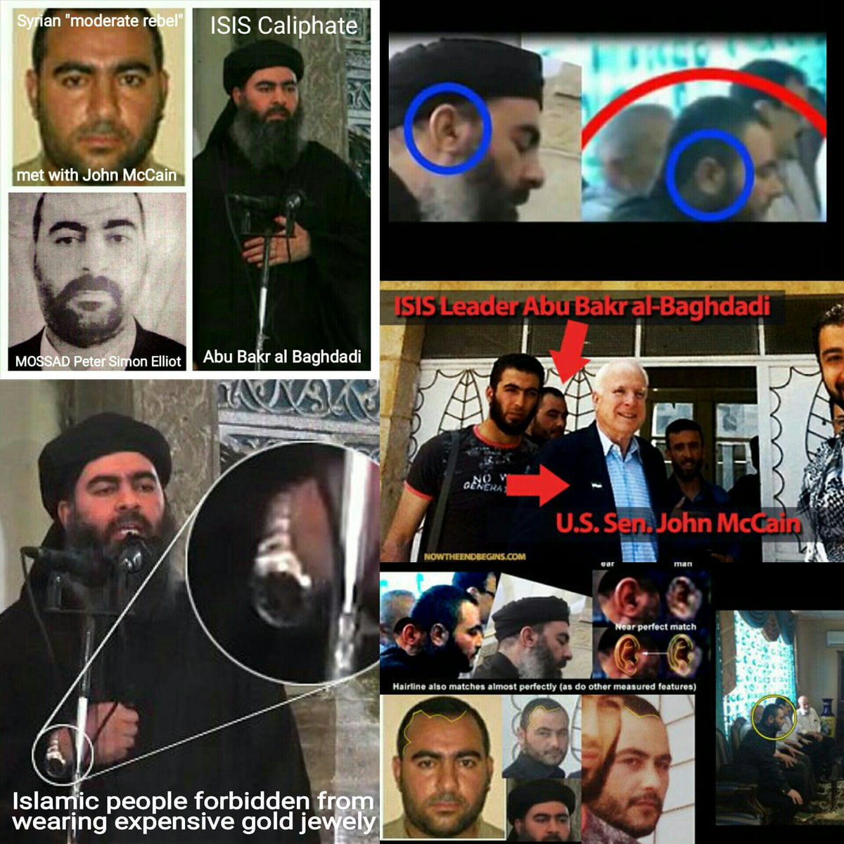 Ele pode ser visto em diversas ocasiões na companhia do infame senador sionista John McCain. As fotos de Simon Elliot comparadas às de al-Baghdadi.