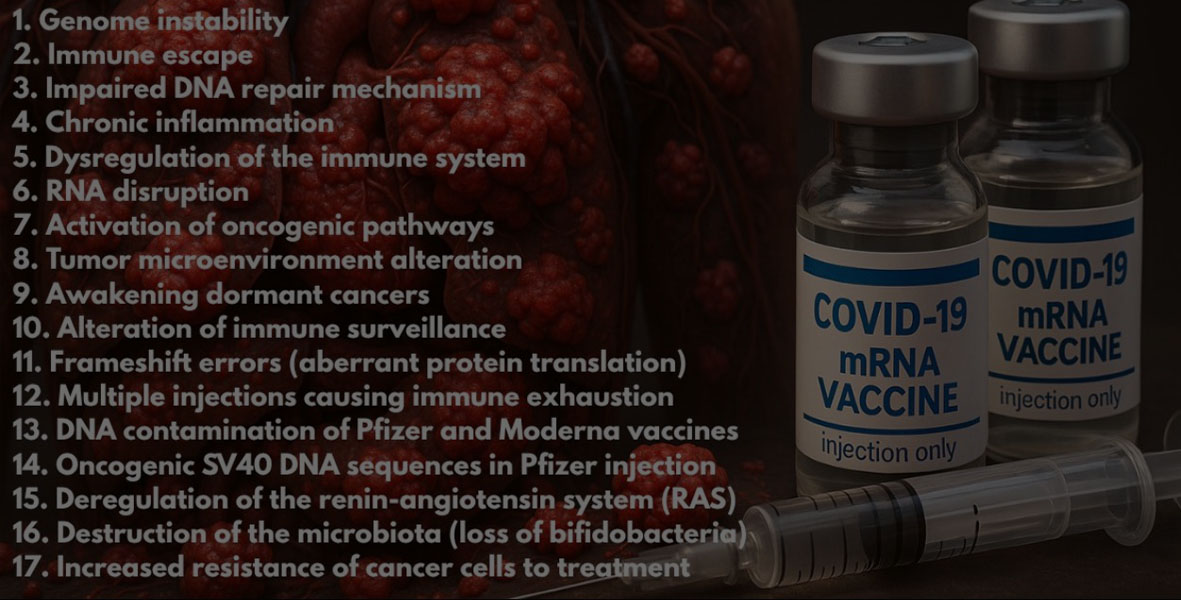 1. Primeiro estudo constata que as “vacinas” contra a COVID-19 aumentam o risco de múltiplos tipos de câncer: https://pmc.ncbi.nlm.nih.gov/articles/PMC12381369/