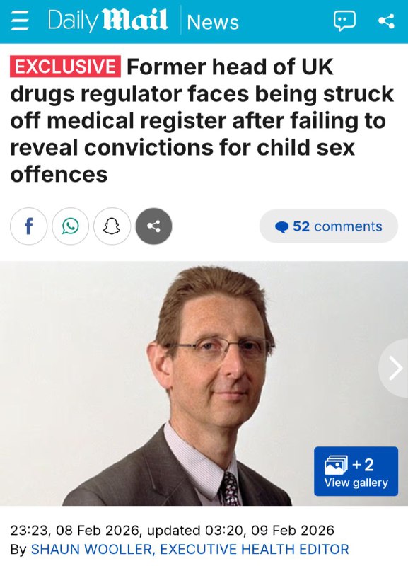 EXCLUSIVO: Ex-chefe do regulador de medicamentos do Reino Unido corre o risco de ser excluído do registro médico após não revelar condenações por crimes sexuais contra crianças.