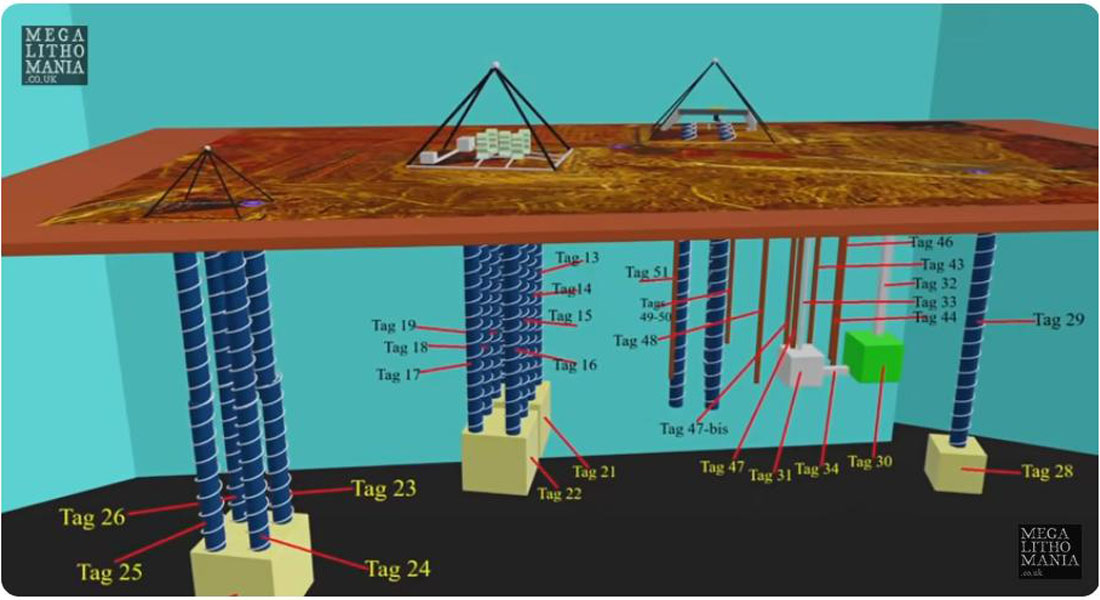 A estrutura subterrânea massiva revelada pelos dados SAR mostra o que parece ser enormes sistemas mecânicos funcionais. E isso já foi hipotetizado no passado. Nikola Tesla acreditava que as pirâmides poderiam aproveitar as frequências naturais da Terra e funcionavam como geradores de energia livre. Isso sem dúvida inspirou seus experimentos em transmissão de energia sem fio e ondas escalares.