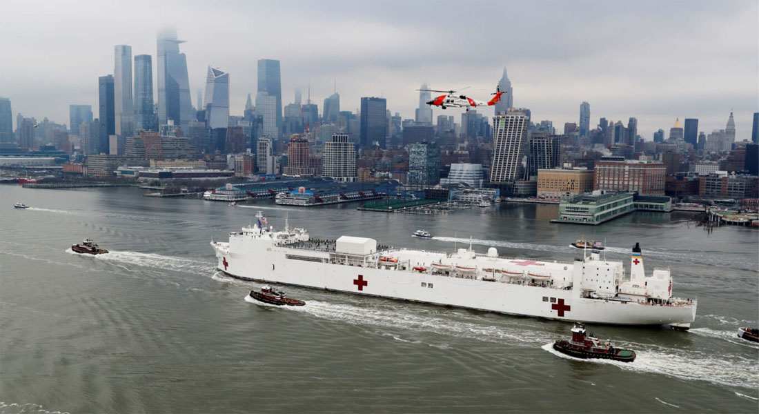 O governo Trump enviou os navios-hospital USNS Comfort e USNS Mercy para Nova York e Los Angeles. A mídia disse que era para pacientes com Covid. Ambos os navios ficaram quase vazios o tempo todo. Alguns enfermeiros e médicos tornaram isso público. Os navios não estavam lá por causa de um vírus. Eles estavam lá para ajudar as pessoas que estavam sendo retiradas de túneis. A prefeitura de Nova York mandou construir um hospital de campanha durante a noite no Central Park. Profissionais médicos expostos relataram que os pacientes trazidos não eram casos de Covid.