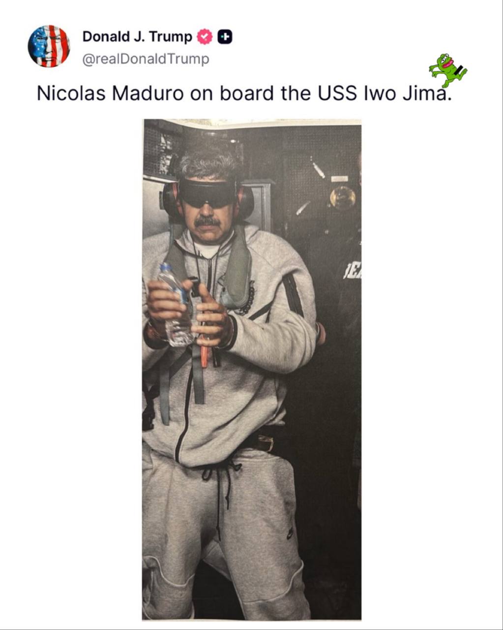 O presidente Trump publicou uma foto de Nicolás Maduro a bordo do USS Iwo Jima.