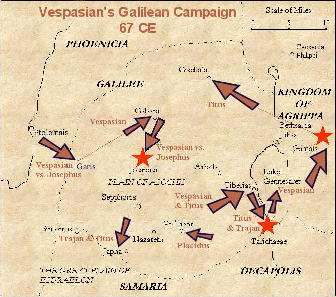 O povo da Palestina e da Galiléia naquela época funcionava com uma constante que era o aparecimento de um Messias que os salvaria da perseguição e opressão dos romanos. Vespasiano e Tito usaram este conceito e as expectativas do povo da época para lhes dar um messias, mas que fosse a favor de Roma, com vista a controlar e suprimir as atividades subversivas dos grupos palestinianos na área da Galileia. Os romanos sob o conceito de: Você quer um Messias? Bem, nós lhe daremos um Messias!