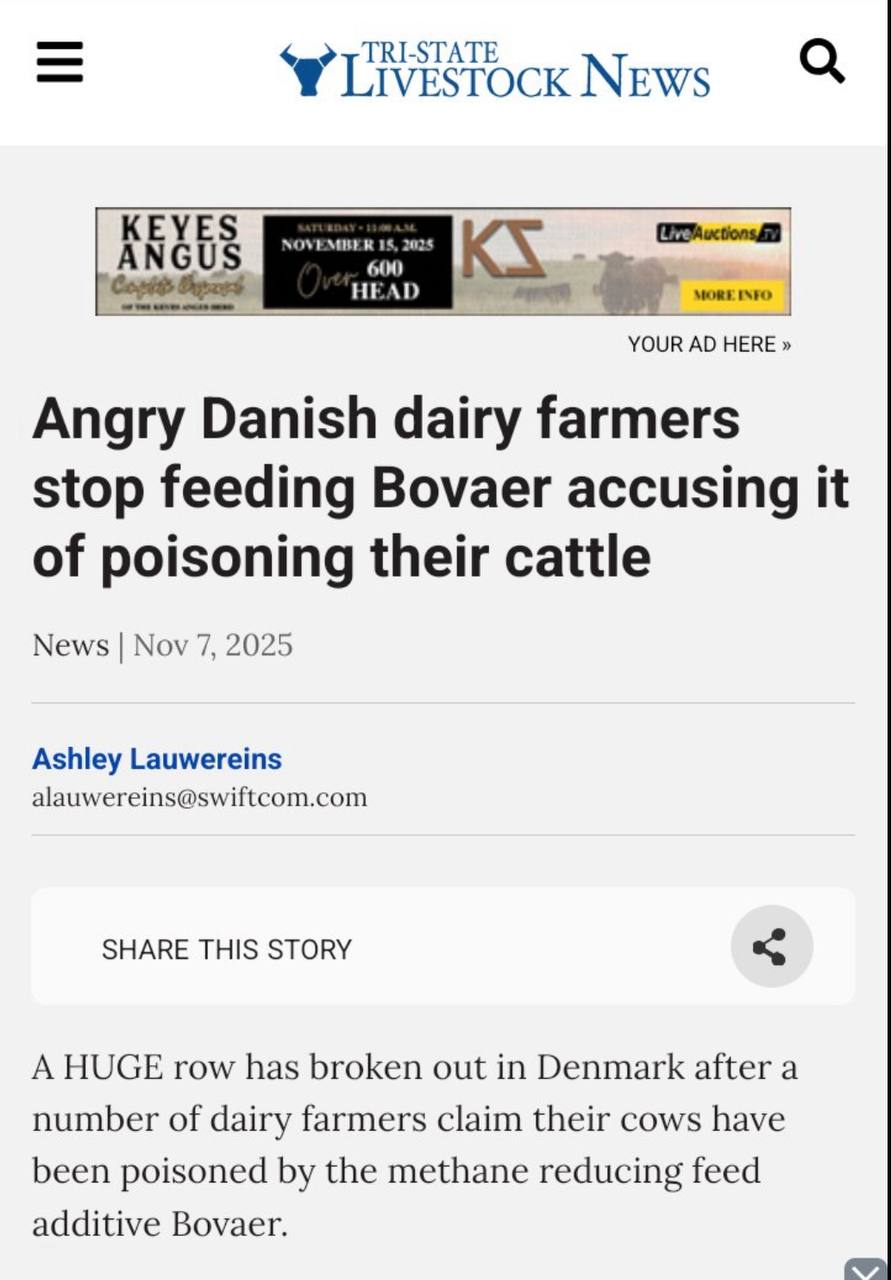 The first farmer from Denmark comes forward and talks about sick and dead cows, after giving his cows the Bovaer poison. 10/28 25. Remember that waste products from Bovaer, are passed on in milk and meat.