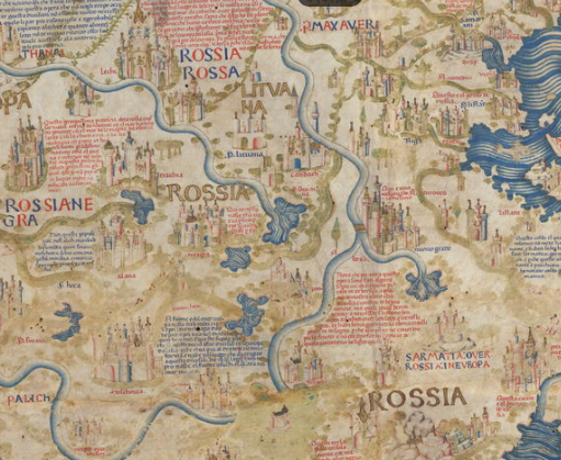 Mas o mapa de Fra Mauro deixa uma coisa clara: A Rússia era dividida em principados ligados pelas mesmas raízes. E os eslavos de pele branca e olhos claros habitavam esse vasto território.