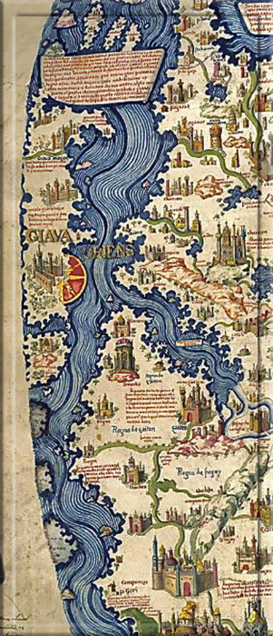 A representação mais detalhada, naturalmente, é a da cidade natal do autor, Veneza. Ao norte, faz fronteira com as Ilhas Britânicas, depois com a Islândia e a Escandinávia. Ao sul, termina na África, apontando para o “Cabo Diab” (Cabo da Boa Esperança), que, segundo Fra Mauro, “eles avistaram de um junco”. Fra Mauro também destaca que o Cabo Diab pode ter conectado os oceanos Atlântico e Índico. Talvez seja por isso que os portugueses estavam tão ansiosos para chegar à Índia por essa rota.