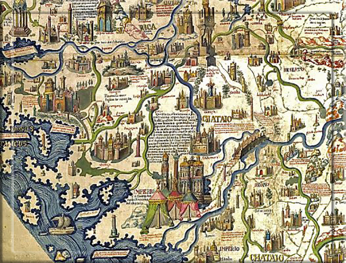 - Informações de Marco Polo —obviamente de lendas de mapas na China e no Leste Asiático.