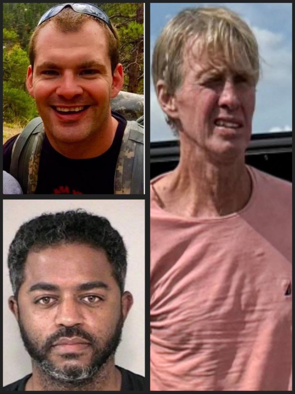 À esquerda, em cima, Matt Livelsberger, abaixo Jabbar, à direita Ryan Routh