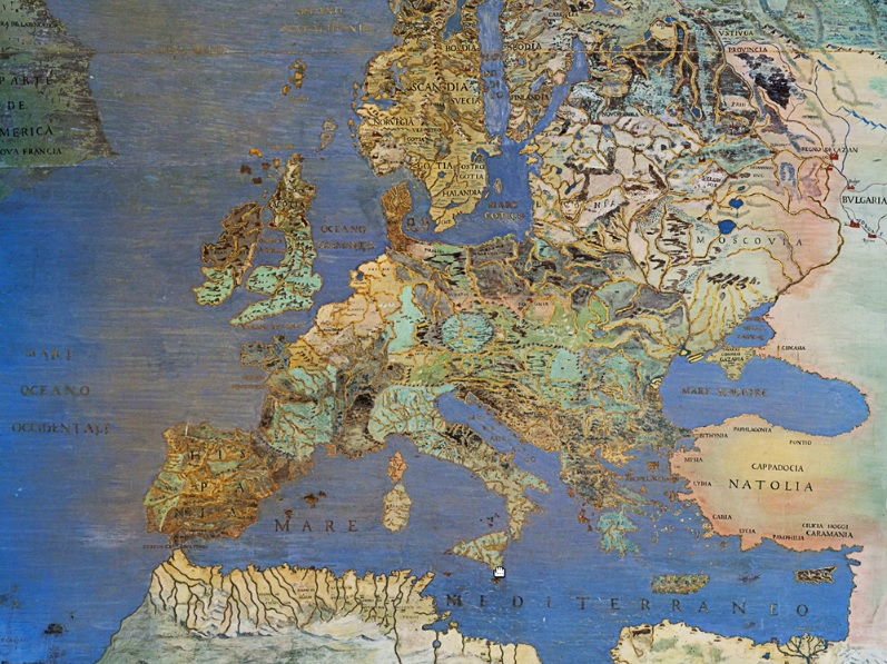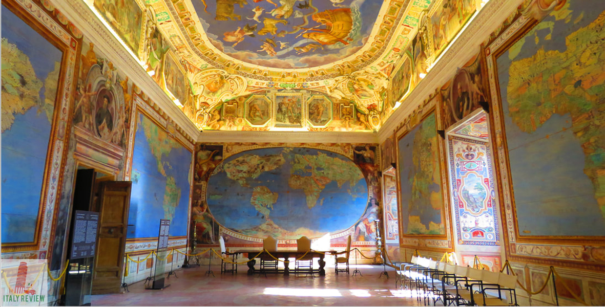 Assim, apesar da Villa Farnese ser um dos projetos arquitetônicos mais ambiciosos de sua época, este texto não trata da villa em si, mas sim de um mapa-múndi muito interessante que se encontra em um de seus cômodos. Na verdade, todo o cômodo é pintado com diversos mapas e regiões conhecidas na época. Todos esses mapas foram criados pelo artista Giovanni Antonio da Varese (Vanosino) entre 1573 e 1575.