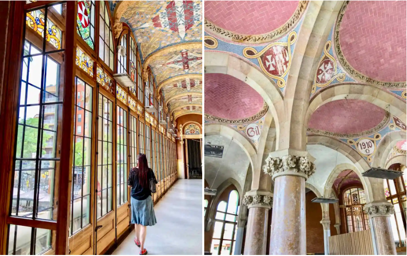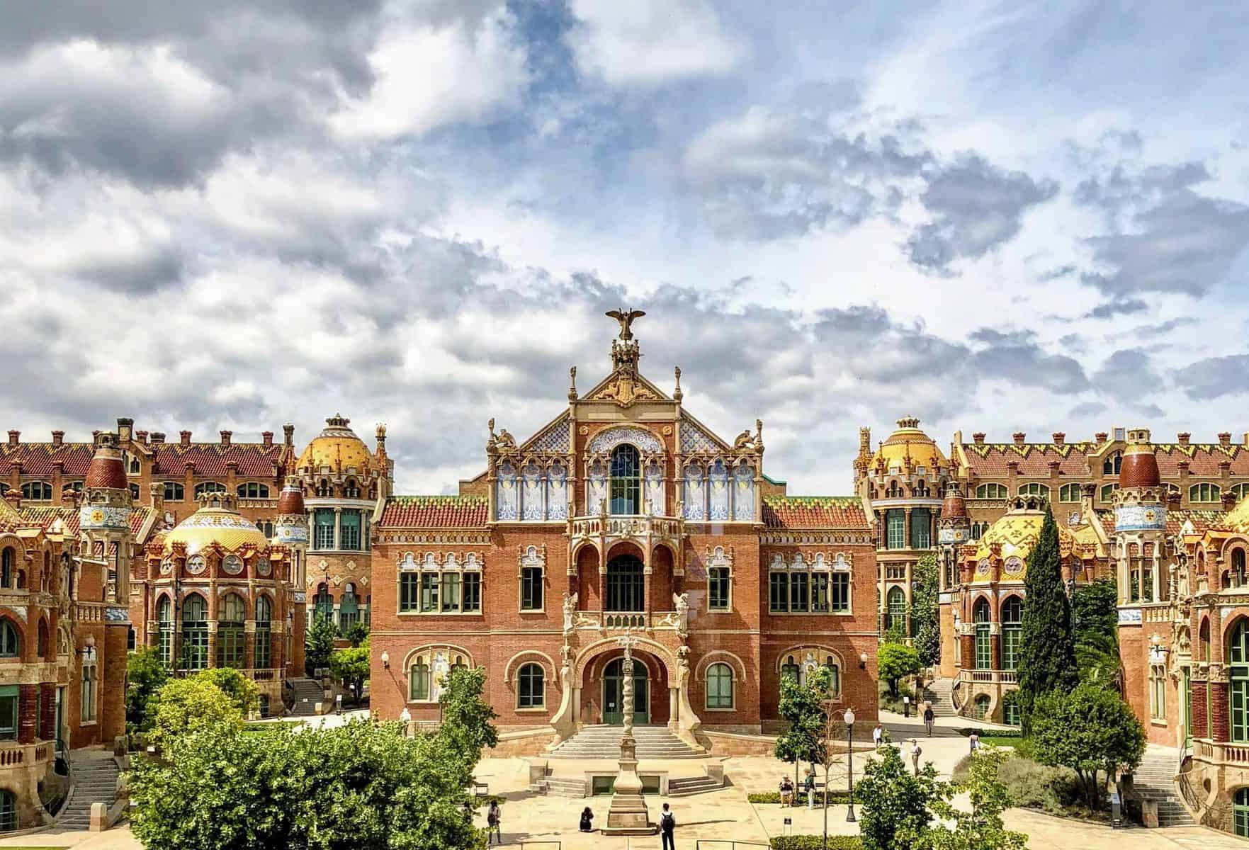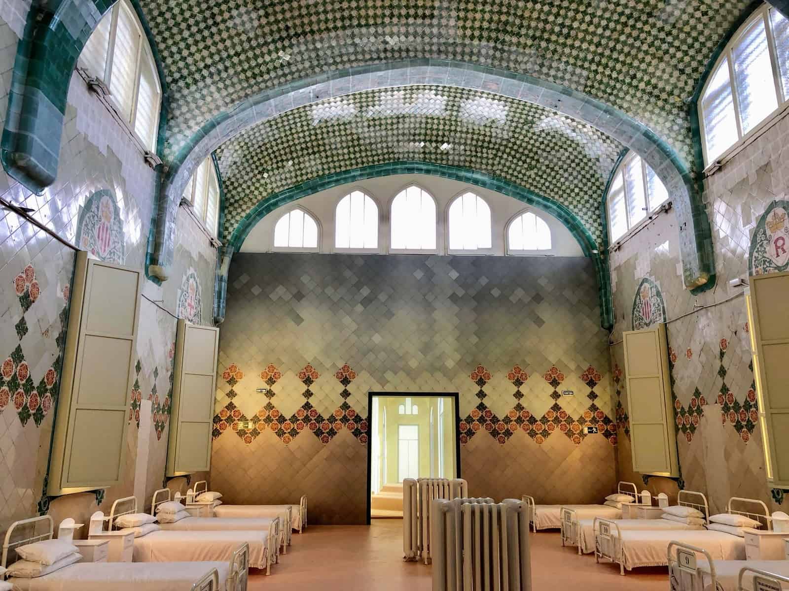 O Hospital da Santa Cruz de Barcelona incorporou a beleza e a natureza ao processo de cura. Os pacientes passavam a maior parte do tempo nos jardins no coração do complexo. O arquiteto Lluís Domènech i Montaner cercou-os com uma série de pequenos edifícios, ricamente ornamentados e facilmente distinguíveis uns dos outros. Curvas orgânicas e motivos vegetais se misturavam à luz natural presente em superfícies vibrantes de azulejos.