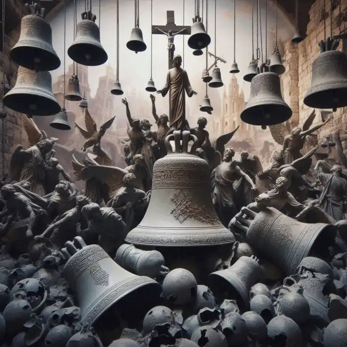 Torres sineiras inteiras foram desmontadas. Sinos que estavam de pé há centenas de anos desapareceram repentinamente sem deixar vestígios. Porque é que todas as culturas, todos os impérios e todas as nações decidiriam simultaneamente livrar-se de uma parte tão fundamental do seu património cultural? A resposta está no controle financeiro da Cabala Illuminati (Vaticano/Jesuítas/Maçonaria).