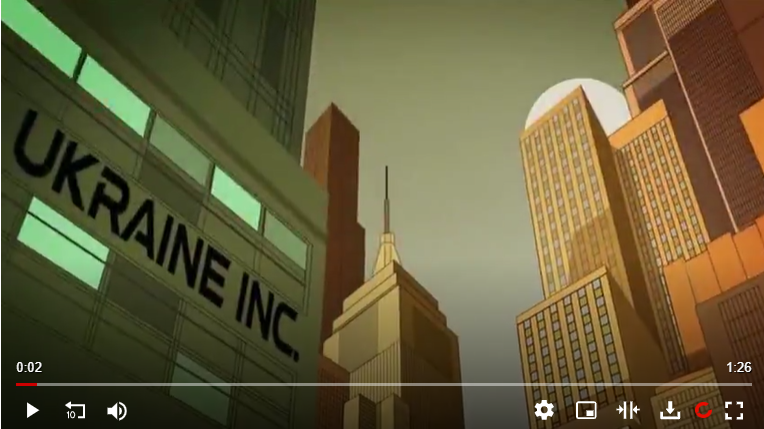 Capturei algumas cenas que achei interessante. O prédio onde está escrito UKRAINE INC. simboliza que a Ucrânia é uma corporação privada e seus habitantes, e tudo o que eles possuem, na verdade são propriedade da corporação. Todos os países que tem Bancos Centrais são corporações privadas. E quem controla a UKRAINE INC. sendo que Zelensky é apenas um fantoche que recebe ordens?