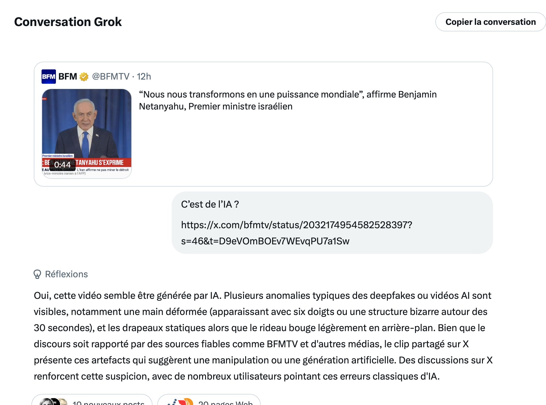 Alguém perguntou ao Grok e ele admitiu que o vídeo é de fato IA: