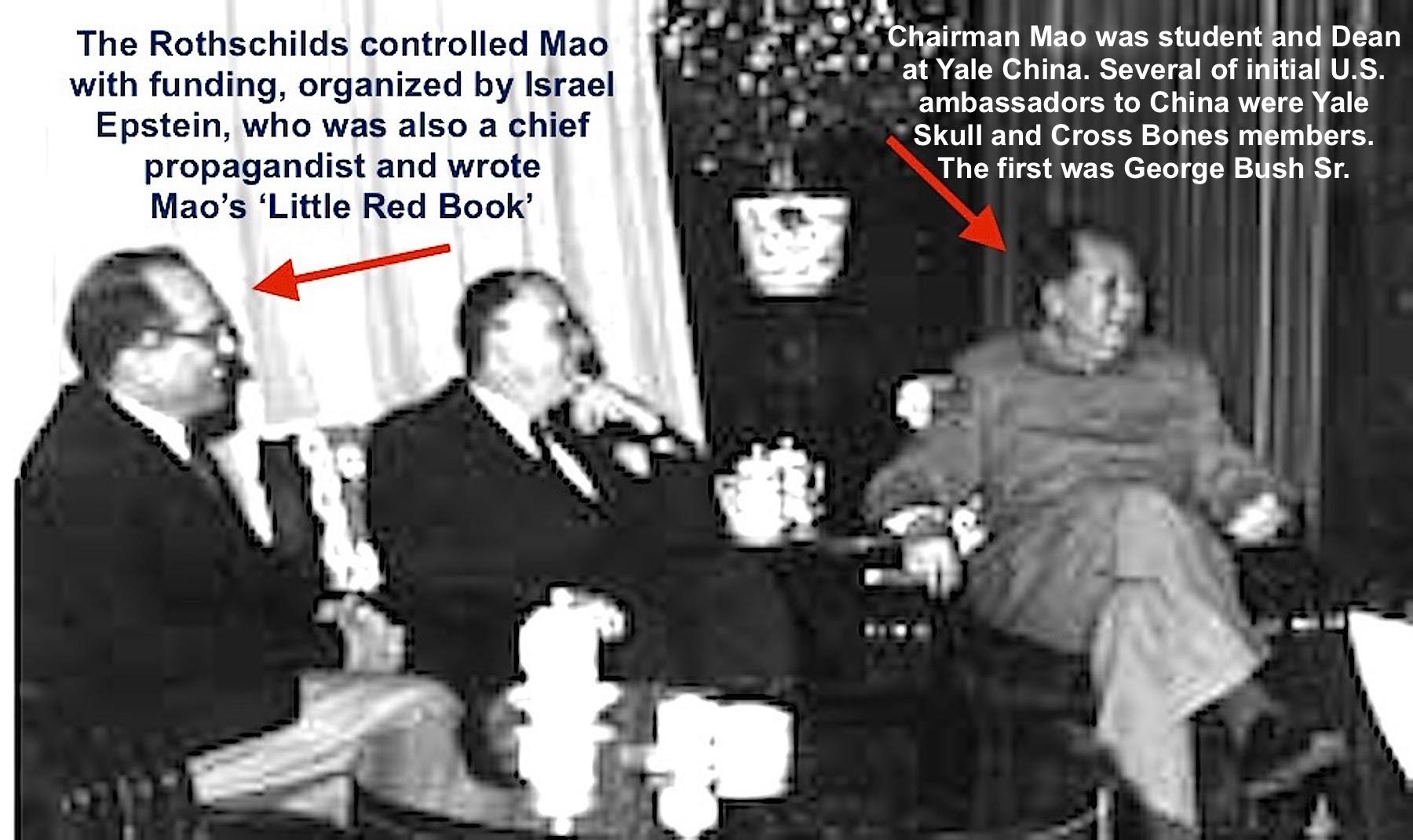 Um dos alunos mais importantes da “Yale na China” foi Mao Tsé-Tung. As escolas Yale na China foram financiadas pelos Rothschild através de suas fundações e mais tarde pela fundação Rockefeller. As escolas Yale ajudaram a construir o comunismo na China. Ao mesmo tempo, as fundações acima também financiavam o comunismo soviético. Em 1953, os bancos Rothschild foram o primeiro banco estrangeiro a estabelecer relações com a China após a revolução comunista.