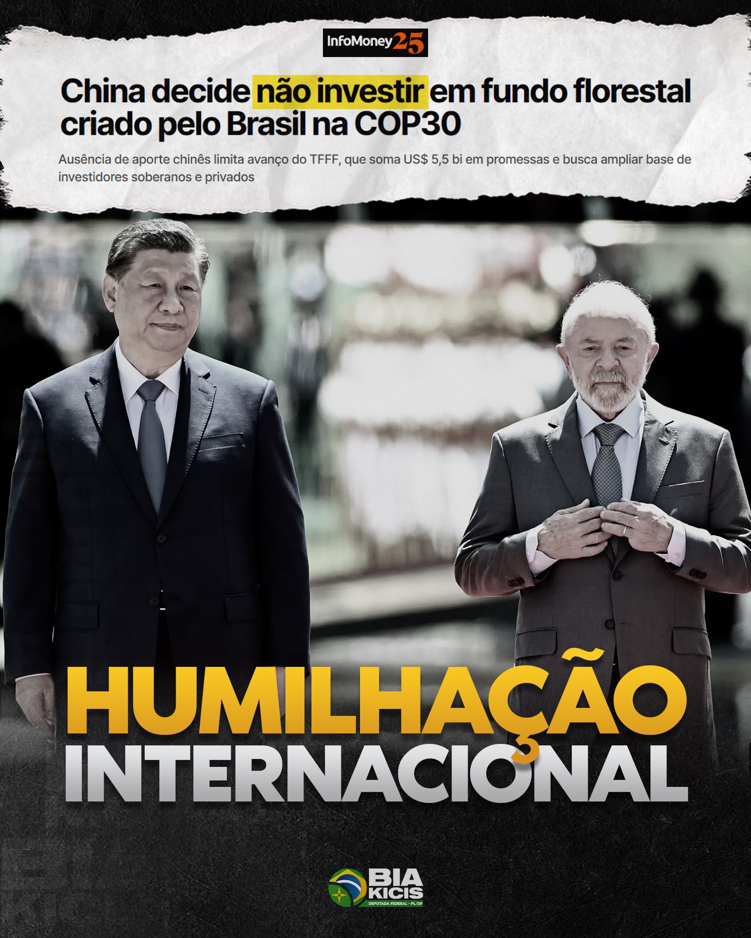 O tal “fundo florestal do Lula” lançado na farsa da COP30 não interessou Xi Jinping pois o dinheiro iria parar nos bolsos da quadrilha petista e dos cartéis de drogas que eles protegem.
