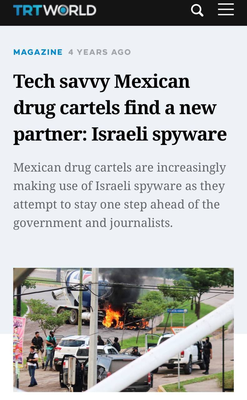 Israel forneceu aos cartéis mexicanos o spyware Pegasus para que eles pudessem atacar e assassinar jornalistas mexicanos e cidadãos no México que trabalhavam para expor o criminoso governo mexicano.