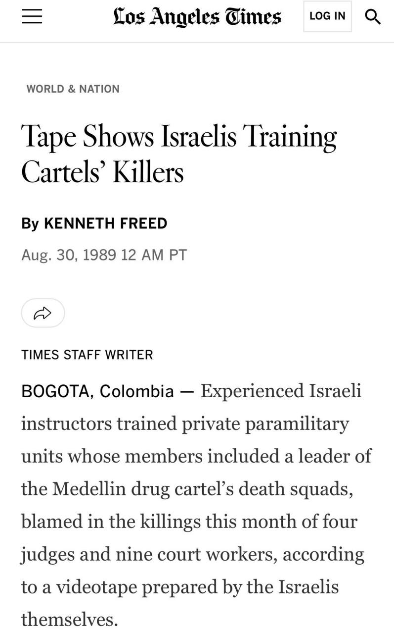 Israel vendeu mais de 24 mil armas de fogo e rifles para o México entre 2006 e 2018, mas as armas de “alguma forma” acabaram nas mãos de cartéis de drogas, revelou um relatório de um grupo de direitos humanos conduzido como parte de uma investigação internacional. Instrutores israelenses experientes treinaram unidades paramilitares privadas cujos membros incluíam um líder dos esquadrões da morte do cartel de drogas de Medellín. Onde existir crime organizado você sempre encontrará Israel.