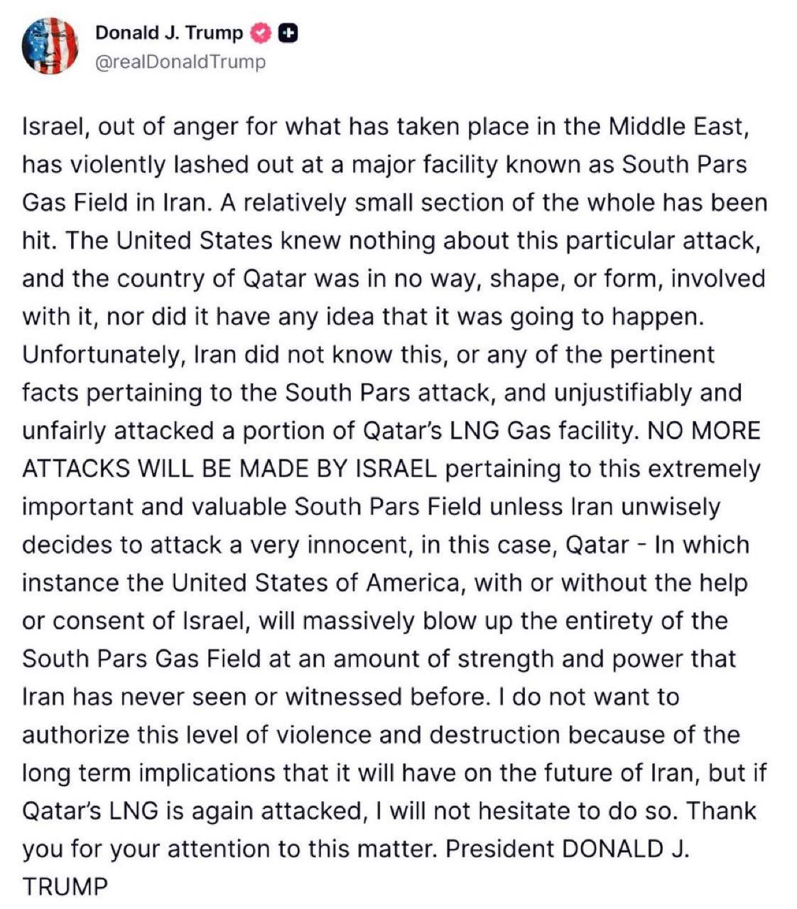Ah, ah. Trump acabou de dar um ultimato a Israel e disse-lhe para não tentar atacar instalações de gás no Irã. Mas eles não estavam lutando a guerra juntos? Porque é que Trump não dá a Israel as armas antiaéreas de que necessita e porque é que diz que bombardeou a ilha de Kharg, que ainda hoje está perfeitamente intacta? Esclareçam-nos, falsos contrainformantes.