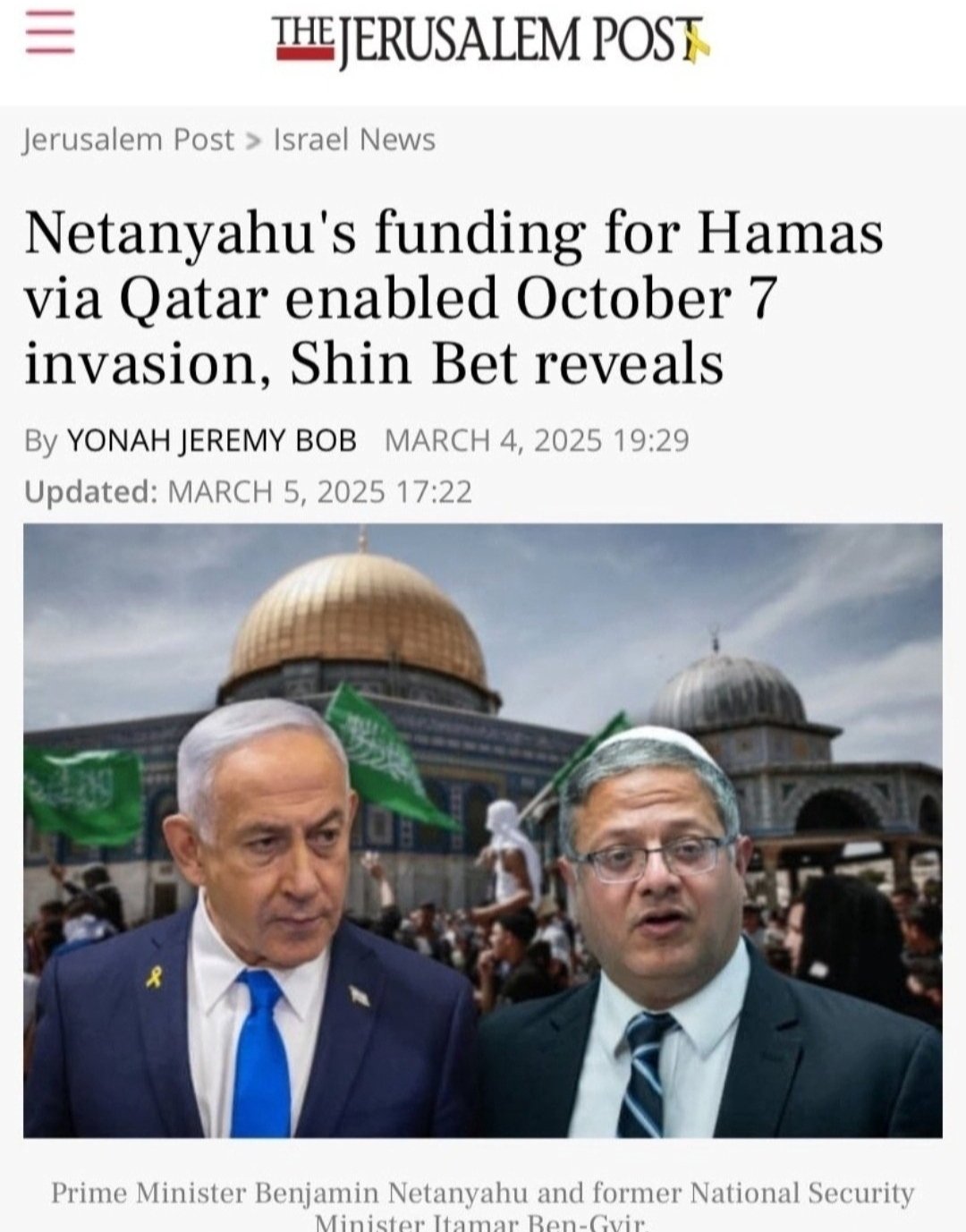 O financiamento de Netanyahu para o Hamas via Catar permitiu a invasão em 7 de outubro, revelou a Shin Bet (Agência de Segurança de Israel). O Hamas é a oposição controlada criada e financiada pelos sionistas de Israel para se fazerem de vítimas perante o mundo.