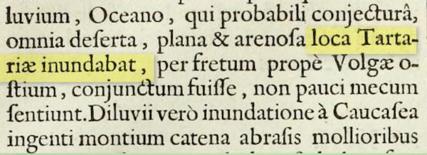 No Capítulo 13 do livro, A. Kircher menciona um poderoso megatsunami vindo do Oceano Ártico, que varreu inúmeras cidades da Tartária e também afundou sua parte nordeste. Este último fato é claramente visível pela mudança na linha costeira do nordeste da Sibéria em mapas medievais. Além disso, foi durante esse dilúvio que a água do oceano vinda do Norte inundou um vasto território da Ásia Central, aumentando significativamente o nível dos mares Cáspio e Negro.