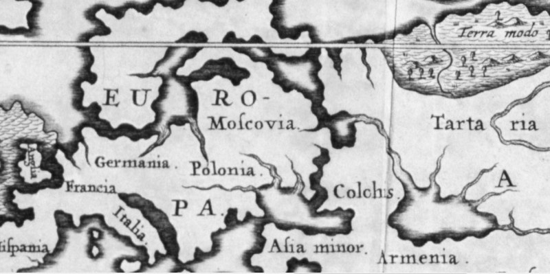 Um poderoso canal do Mar Cáspio para os mares do norte separa a Moscóvia da Tartária.
