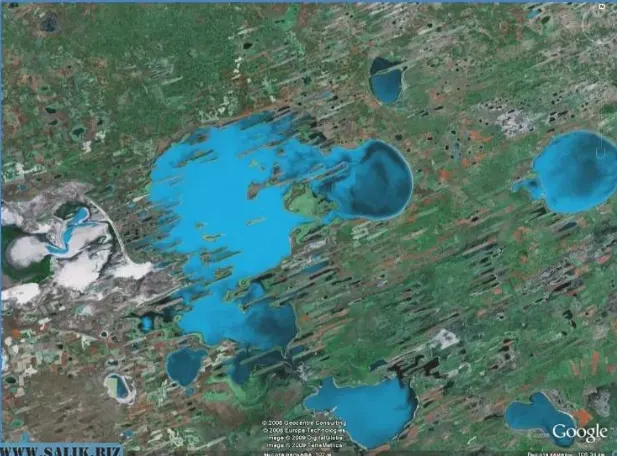 E agora, em vez de um enorme lago, existem pântanos com uma área de 53.000 km2, como mostra o mapa de satélite.
